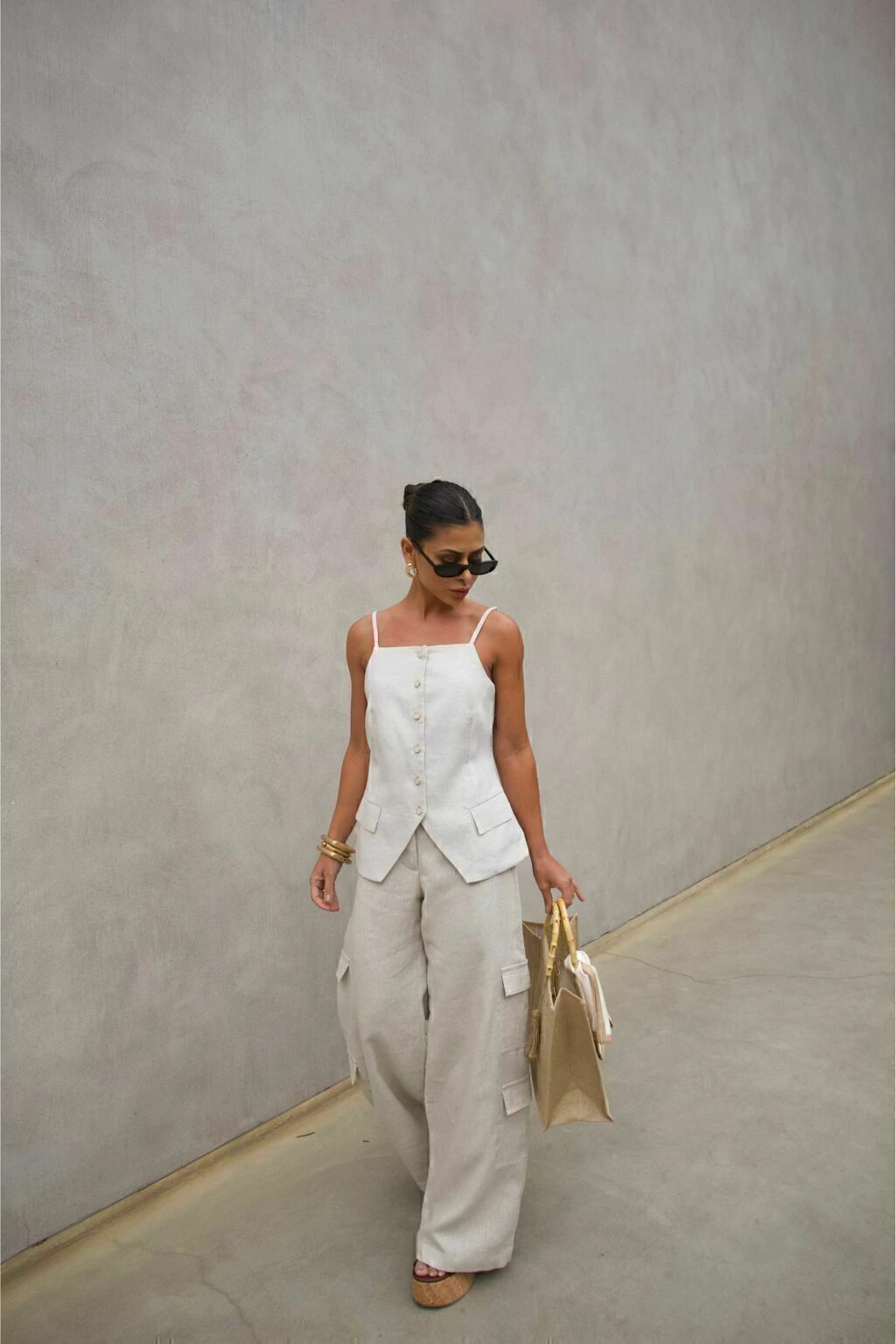 Calça Kimi Areia: A escolha perfeita para quem busca conforto e estilo! Esta calça de linho alfaiataria é confeccionada em 100% linho, garantindo leveza e frescor. Com um modelo cargo, ela apresenta fecho em colchetes e bolsos utilitários laterais, unindo praticidade e elegância. Seu design atemporal se adapta a diversas ocasiões, tornando-a uma peça indispensável no guarda-roupa. Aposte na Calça Kimi Areia e eleve suas produções!
